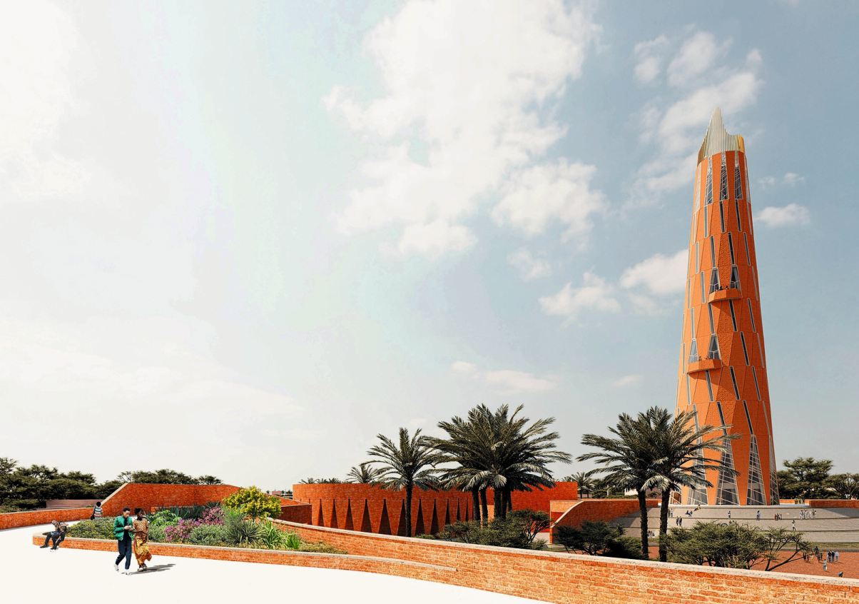 Ein zentrales Element des zukünftigen Parks wird ein 100 Meter hoher Gedenkturm sein, der an der historischen Hinrichtungsstätte geschaffen wird. Auf 87 Metern Höhe – in direkter Anspielung auf das Jahr der Ermordung – entsteht eine öffentlich zugängliche Plattform mit Blick auf die Stadt. Diese vertikale Setzung transformiert einen ehemals traumatisch besetzten Ort in ein Zeichen von Würdigung und kollektiver Erinnerung.