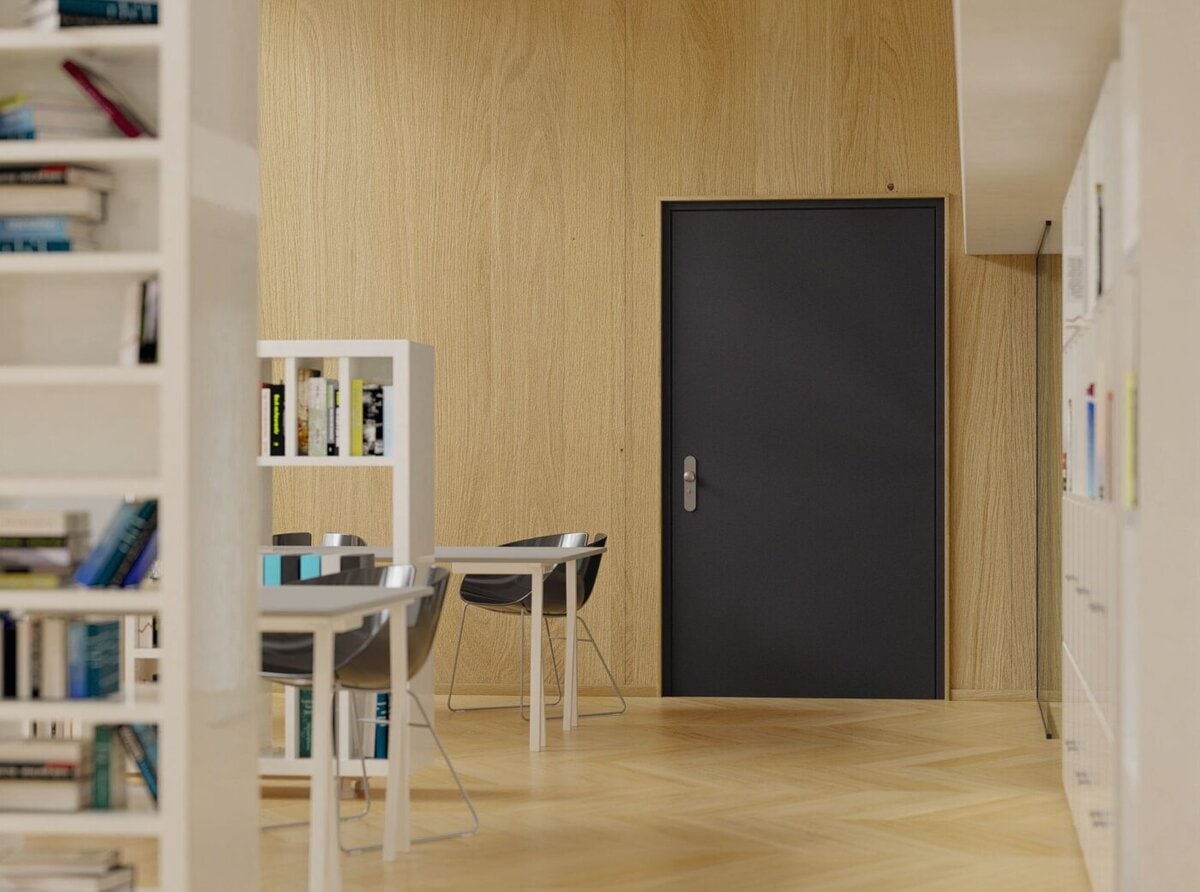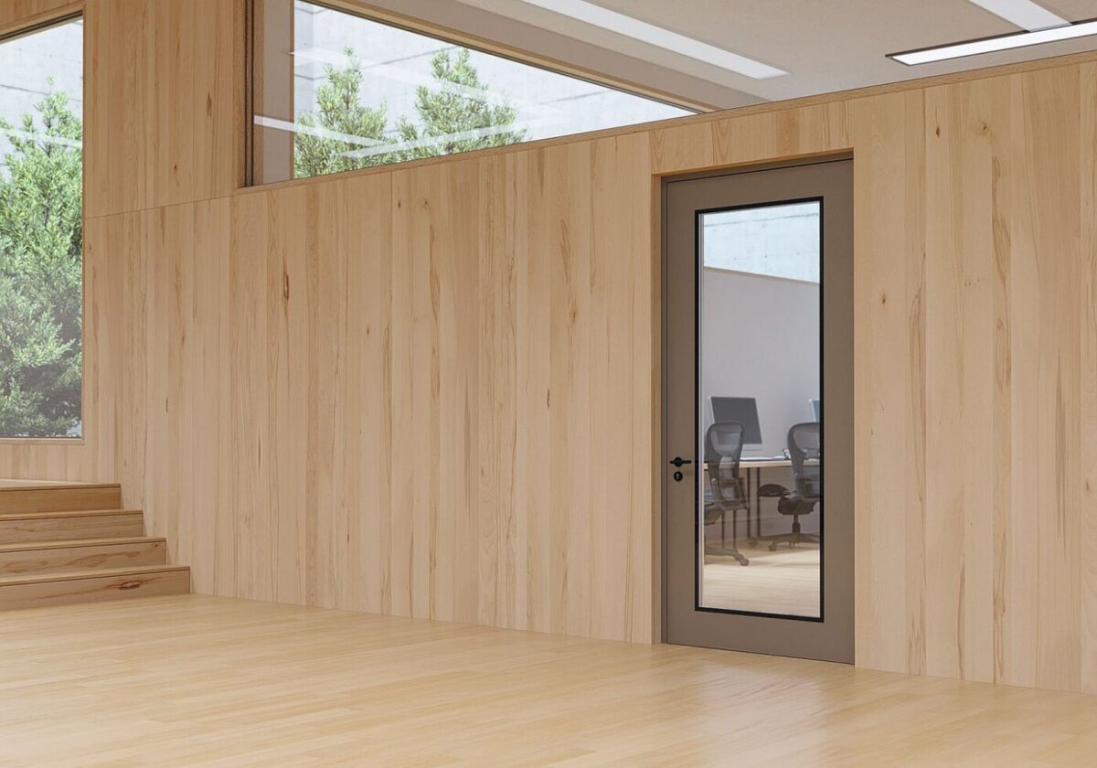 Die «Peneder Highlineflat» bietet dafür eine innovative Lösung. Sie ist eine Multifunktionstür, die nicht nur aufgrund ihrer Eigenschaften wie Brandschutz der Klasse EI₂30, Rauchschutz, Einbruchhemmung bis RC3 und Schallschutz heraussticht, sondern auch durch ihre besondere Anpassungsfähigkeit an CLT. Peneder hat bereits bei der Entwicklung der Stahltür erkannt, dass es im Bereich Brandschutz noch Nachholbedarf für die Montage auf Holzwerkstoffen gibt. Hersteller von Brandschutztüren und -elementen haben bisher oft keine Standardzulassung für die direkte Montage auf CLT-Werkstoffe und so müssen aufwendige Verkleidungen angebracht werden, um die erforderliche Zulassungskonformität zu erreichen.