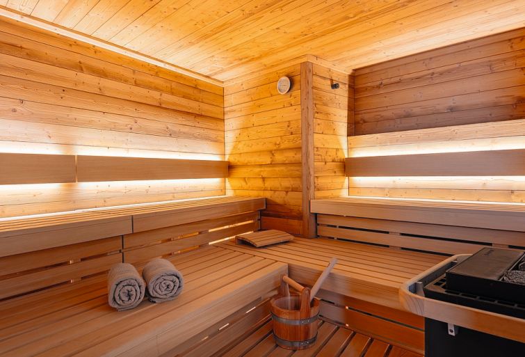 Die neue Spa-Landschaft umfasst eine grosszügige Profi-Sauna mit Fichtenholzverkleidung und faszinierender Himalaya-Salzwand, ein stilvoll inszeniertes «Sanarium» mit milderen Temperaturen und eine klassisch-heisse finnische Sauna mit «Klafs Bonatherm»- und «Majus»-Ofentechnik für intensive Aufgüsse. Ergänzt wird das Angebot durch ein duftendes Aromadampfbad, zwei wohltuende Infrarotsitze, eine Erlebnisdusche mit Regen-, Duft- und Farbfunktionen sowie eine klassische Kübeldusche und zwei Fusswärmebecken. Ein besonderes Highlight ist der Eisbrunnen «Stalagmit» von Klafs.
